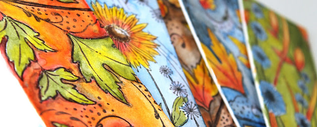 Hi everyone! Jill Foster here bringing you a new Simply Shimmerz, Simply Penny Black Stamping video. Today I'm creating miniature stamped paintings with Aqua Huez. These are great for miniature greeting cards, to add to a gift bag for a handmade touch, or, if you're working ahead on a Thanksgiving tablescape, they make wonderful placecards, too, just add your guests' names at the bottom instead of a sentiment.